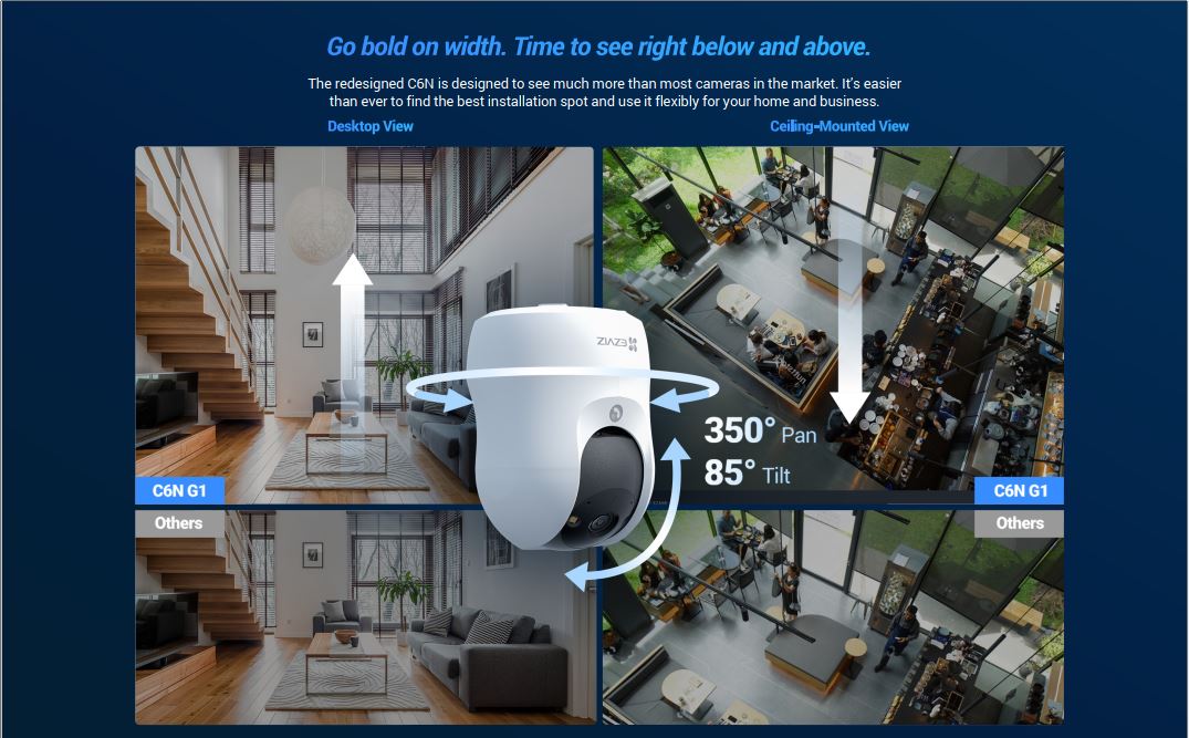 EZVIZ C6N G1 3K 5MP có quay quét toàn bộ phòng không?