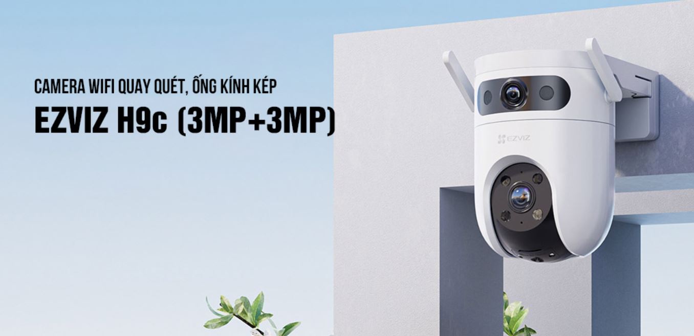 EZVIZ H9c Dual 6mp với 3MP cho camera cố định, 3MP cho camera quay quét ở dưới. Góc nhìn cố định + góc nhìn chuyển động, một góc chuyển động và một góc nhìn tĩnh, cả hai góc nhìn đều có độ nét cao. Camera H9c cho tầm nhìn kép, tầm nhìn toàn cảnh, vừa bao quát mà vẫn chi tiết với khả năng quay quét 360 độ , quét theo chiều ngang 340 độ và quét dọc 80 độ